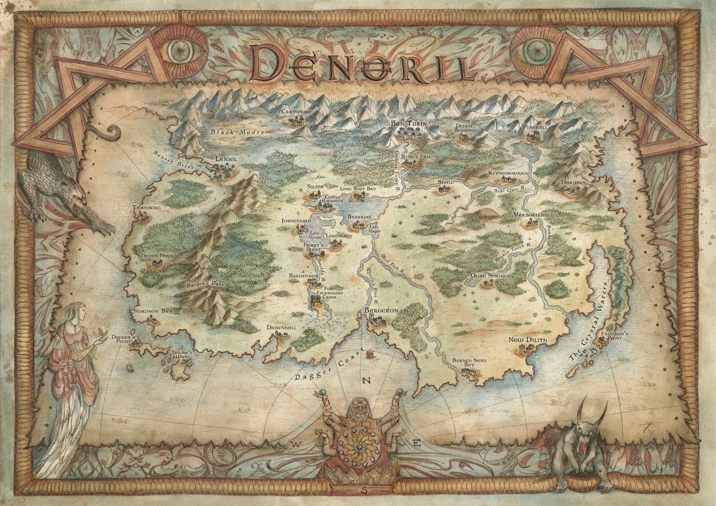 The Overthrown series takes place in Denoril, the Land of the Five Provinces. Here's a closer look at the map, designed by artist Francesca Baerald.